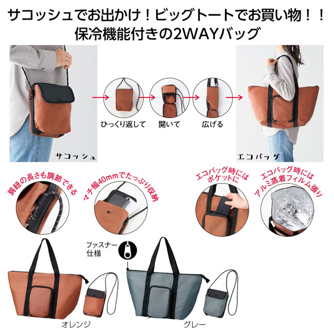 サコッシュとトートバッグの2WAYで使える保冷温バッグ。省エネとおしゃれ感を兼ね備えたノベルティバッグが製作できます。