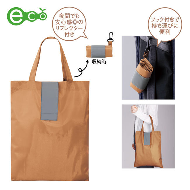 ポータブルリフレクターエコバッグ(フック付き)(SNS-0600959)夜間でも安心感があるリフレクター付き