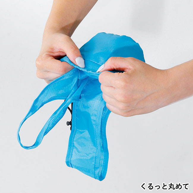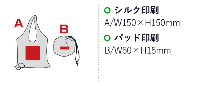 バッグに大きく名入れ、もしくは丸めて収納した部分にもワンポイントで名入れプリントを承っております。当店は通販ならではの激安価格でオリジナルデザイン制作をご注文頂けますので、より販促力の高いノベルティ作成にご活用ください。