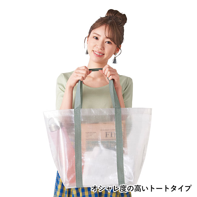 「クリアライン ショッパーバッグ」は、頼もしいビッグサイズがレジャーにもお買い物にも活躍する大型クリアバッグになります。汚れや水濡れを気にせず使えるシースルー生地で作成されていて、公園遊びやプールの道具などを入れるのにもぴったり。中身が見えるお洒落なクリアバッグは、アパレルショップやテーマパークのオリジナルショッパーバッグにも最適です。施設名やロゴなどを当通販店ならではの格安価格にて名入れ制作致します。