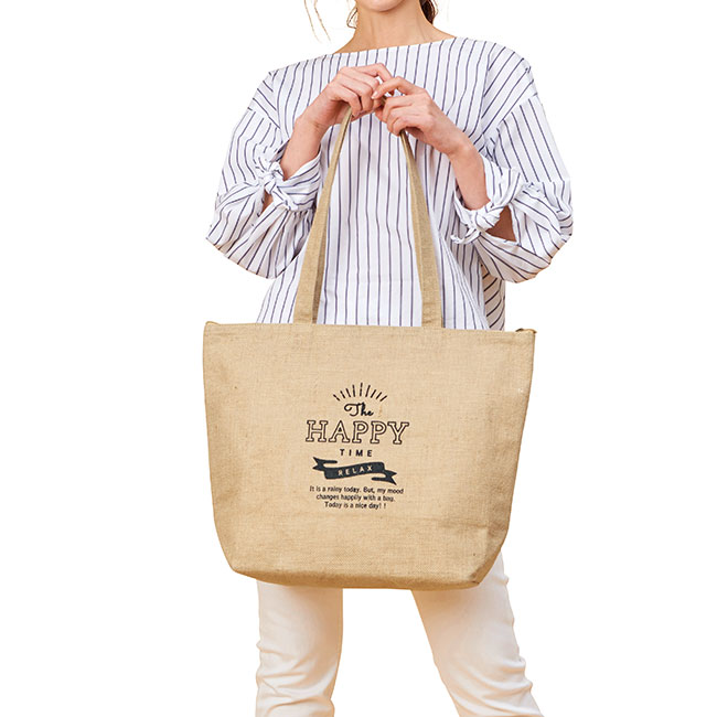 「ジュートビッグクーラーバッグ」は耐久性に優れ程よい光沢感のあるジュート素材を使用し、内側にはアルミ蒸着フィルムを施してありますので保冷効果も備わった機能的なバッグです。2Lのペットボトルも余裕で入る大きさとなりお買い物の際のエコバッグやキャンプなどに食材を持ち歩く時に重宝します。イラストやロゴなど印刷してオープン記念品や販促ノベルティにお勧めです。