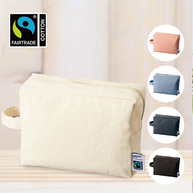 「フェアトレードコットンキャンバスファスナーポーチ(L)」は、スキンケアコスメやトラベル用品を持ち歩くのに便利な大きいスクエアポーチです。フェアトレードコットンで作られており、優しい質感の生地と温もりのあるスモーキーカラーがポイント。サイドループ付きで、使う人にも配慮したデザインです。カラフルな名入れも通販ならではの格安価格で承りますので、ショップのノベルティや記念品の製作にご検討ください。
