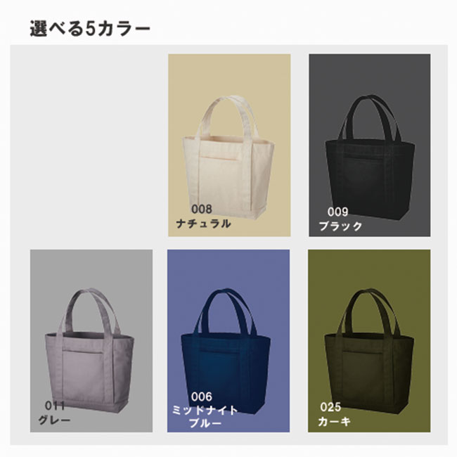 ハンドルラインと大人カジュアルな5色展開が魅力の「キャンバスライントート(S)」。単色使いが落ち着いた大人向けな印象で、場所を選ばずお使い頂けるトートバッグです。外ポケット付きでスマホや小物の収納もラクラク。しっかりとした丈夫な12オンスのコットン生地で長く使って頂けます。価格も格安ですので、店舗ノベルティやイベントの記念品に名入れしてご活用ください。