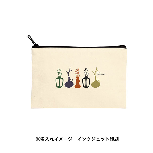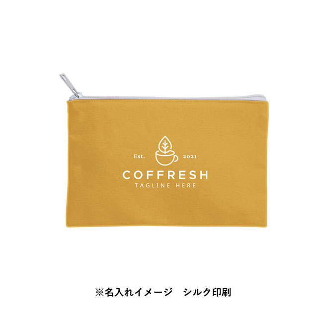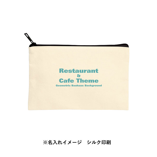 キャンバス生地を使用した丈夫なフラットポーチになります。通帳や印鑑、ポイントや病院などのカード類の収納やペンケースなど多種多様な使い方が出来ます。無駄のないシンプルなデザインで名入れを引き立たせてくれますのでブランディングにも効果的です。