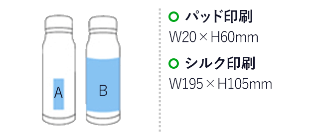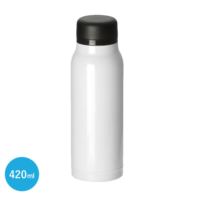 360度どの向きからでも利用する事が出来るステンレスボトル(420ml)(白)。白を基調としているので、名入れが印刷が目立つので、競合他社との差別化を図る事で企業認知度を向上する事が出来るます。リニューアルオープンの記念販売や新規オープンの店舗の贈呈品として利用する事が出来る販促アイテムです。