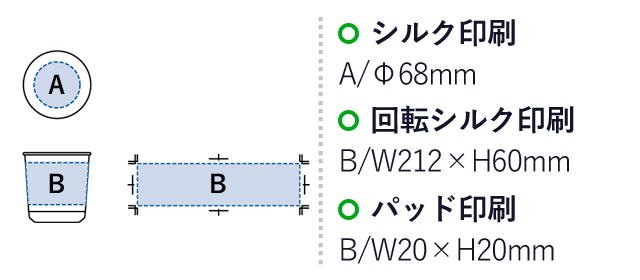 Zalattoフタ付サーモタンブラー300ml【一部カラー在庫限り】(SNS-0300356)名入れ画像 シルク印刷:A/Φ68mm 回転シルク印刷:B/W212×H60mm パッド印刷:W20×H20mm