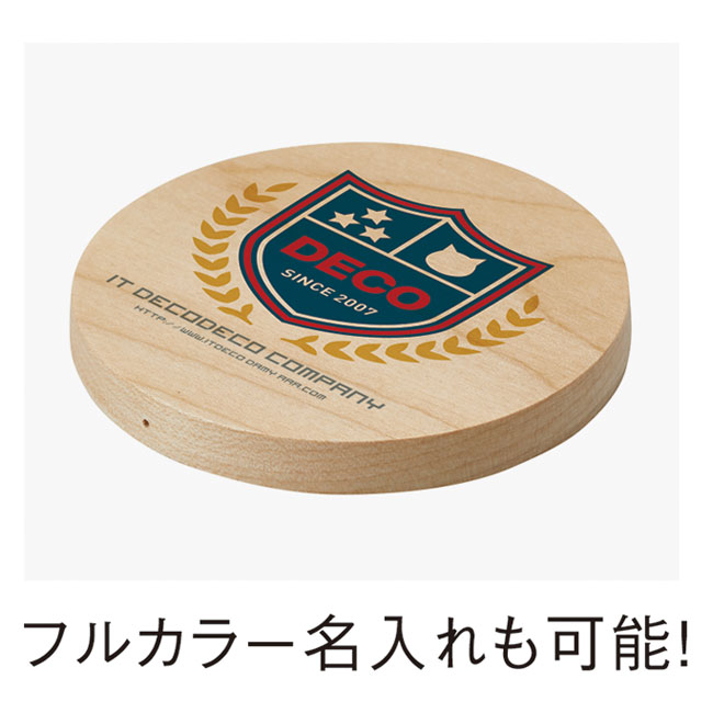 ウッドワイヤレスチャージャー(SNS-0900045)名入れ画像 シルク印刷、フルカラー印刷:Φ80mm