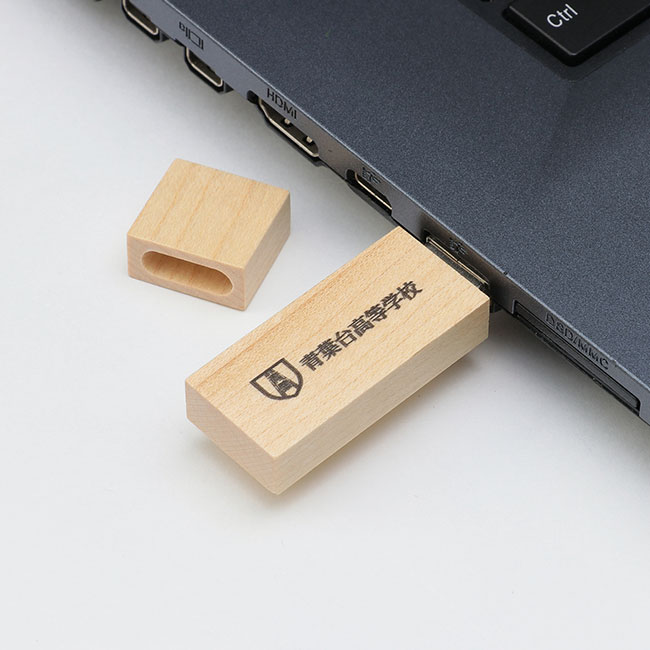 「木製USBメモリー 16GB」は、ナチュラルな印象を与える木製のUSBメモリー。容量はレポートや書類などのデータを保存するのに丁度良い16GBなので、学生へお渡しする贈答品やノベルティに喜ばれます。本体への名入れ印刷は、鮮やかなフルカラープリントの他、高級感を高めるレーザー刻印も対応可能です。入学・卒業の記念品やPCの購入特典ノベルティなどに最適ですので、当通販店での激安オーダーメイド製作をぜひご利用下さい。