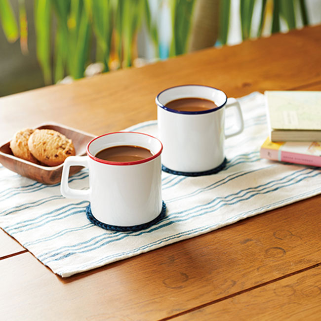 口元の差し色がシンプルながらオシャレな「陶器マグストレート ラウンドリップ」はストーンウェアで作られており陶器の優しい雰囲気を持ちながら磁器の様な耐久性を持ち合わせています。ブルー以外はフルカラーで絵柄の印刷が出来ますので販促ノベルティやオリジナル販売グッズ作成などにご活用下さい。