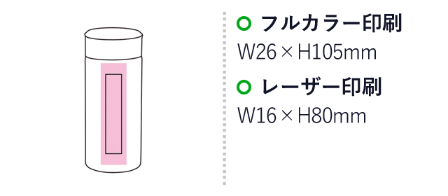 超軽量ステンレスボトル250ml(SNS-1001251)名入れ画像 フルカラー印刷:W26×H105mm レーザー印刷:W16×H80mm