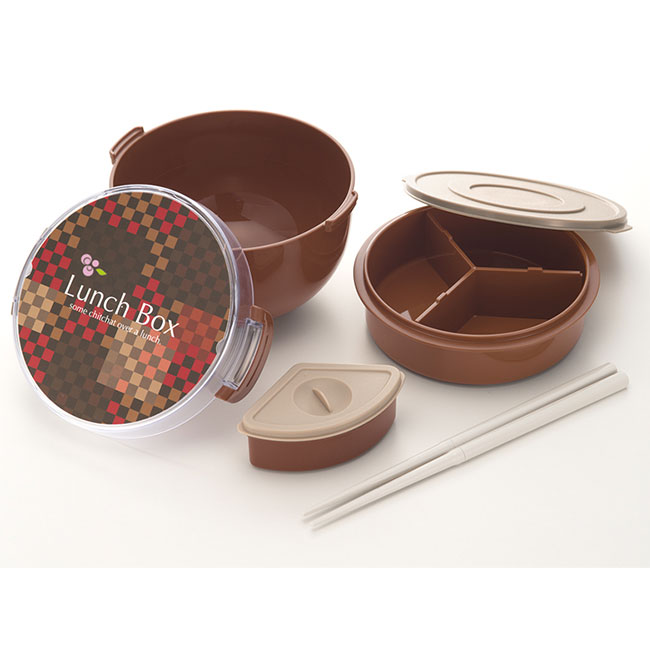 丼や麺類などの持ち歩きにぴったりで、お弁当のバリエーションを広げられるランチボックスが「丼ランチボックス(箸付)」です。丼型のランチボックスは2段に分かれています。ご飯とおかずを別々に入れて食べる直前に乗せられるため、味が混ぜることなく出来立ての丼や麺類が食べられて便利。おかずの仕切りやジョイント式の箸も付属しています。フタにはオリジナルのフルカラープリントが可能ですので、食品メーカーのキャンペーンノベルティや雑貨店のグッズ制作に格安価格にてご利用いただけます。