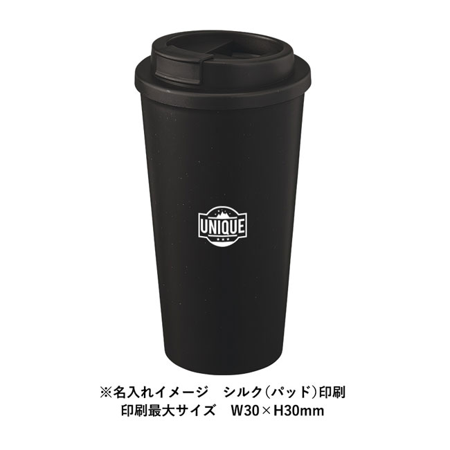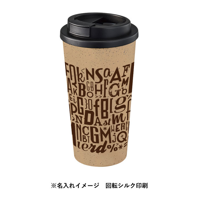 「ダブルウォールタンブラー550ml(コーヒー配合タイプ)」は、550mlの大容量が毎日のカフェブレイクや水分補給に役立つタンブラーになります。コーヒーをイメージした本体には、コーヒーを抽出した後に残る豆かすを再利用しています。カフェのLサイズドリンクも余裕で入る大きさですので、マイタンブラーの持ち歩きにも最適。紙カップの消費削減にも取り組めて、SDGへの意識が高まるアイテムです。イベント名や企業ロゴを名入れプリントし、エコを推進する記念品製作にいかがでしょうか。