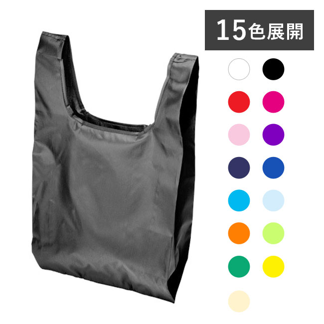 「マルシェバッグ(ジッパーポーチ付き)」は、分離型のジッパーポーチがついたポリエステル製エコバッグ。軽量で丈夫なポリエステルバッグを小さく畳み、専用のポーチに入れて携帯できます。ジッパー付きなので中身が飛び出る心配がなく、出し入れもしやすい商品です。15色の豊富なカラーからお選びいただけますので、店舗ロゴや企業名などのオリジナルデザインを施して、イベントの来場ノベルティやショップのキャンペーングッズ製作にご活用ください。