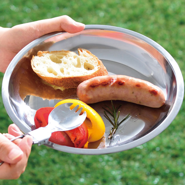 「アウトドア ペアプレートセット」は、軽いステンレス製のプレートと折りたたみ式先割れスプーンのセット。お皿とスプーンがそれぞれ2つずつ入ったペアセットなので、二人で使うことができます。キャンプやBBQなどのアウトドアに大活躍のアイテムですので、アウトドアイベントの参加記念品や旅行ツアーの特典ノベルティにお薦めです。通販専門店だからこそ可能な激安価格で発注致します。