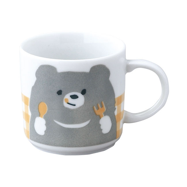 可愛らしい灰色のベアーをデザインした、ベアミール・マグカップ1Pです。いくつあっても困らず、ノベルティとして人気のマグカップ。子どもから大人まで使えるデザインが登場しました。灰色とイエローを基調としたやさしい色合いで使うたびに癒されます。マグカップは小さなお子様もよく使うので、卒園の記念品やお子様向けのギフトとしてご活用いただけます。オリジナルデザインのプリント不可の商品となりますが激安価格で販売しておりますので、ぜひご検討ください。