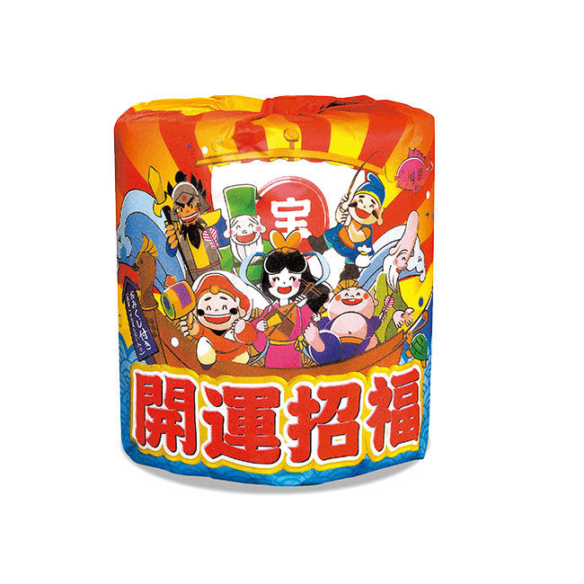 七福神のインパクトが驚異的「開運招福ロールティッシュ七福神」は、激安価格ですが派手やかなパッケージなので、積んだり大量に並べることでお買い物中の主婦や子供の目に留まりやすいです。