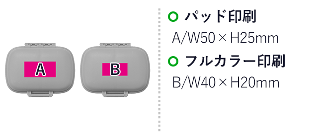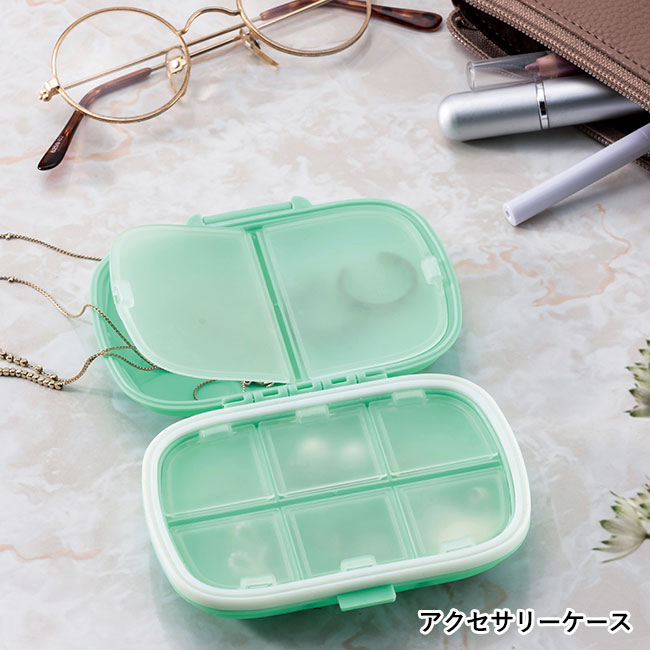 大小8分割の便利な仕切りポケットで薬やアクセサリーなどを収納できる「8ポケットマルチケース」です。両開きでぱかっと開くケースは中身を取り出しやすく、ステーショナリーやネイルアートのパーツといった細かい道具の保管に役立ちます。丸みを帯びた形状は年配の方も持ちやすく、シニア層に訴求するノベルティのオリジナル製作にもお薦めです。ロゴや団体名などを格安プリント致しますので、クリニックのノベルティ、健康食品の購入特典などにいかがでしょうか。