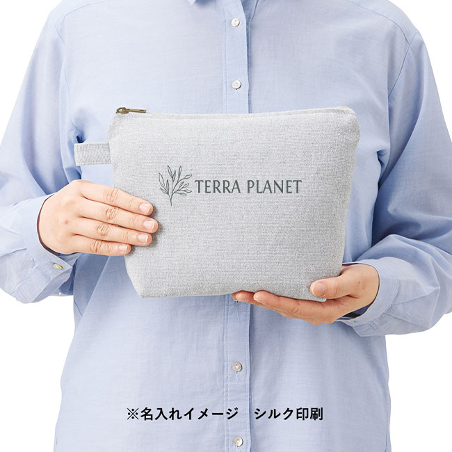 再生コットンのシャンブリック素材で作られた「シャンブリックキャンバスデイリーポーチ(M)」は、エコ活動に貢献できる環境にやさしいポーチです。織り交ぜた糸の風合いが優しい生地は約10オンス相当の厚さがあり、コスメや文具をたくさん入れても安心。ガジェット小物も十分に入る大きさで、男女問わずお使いいただけます。アパレルのノベルティやオリジナルグッズとして、カラフルなデザインを名入れした特注品製作に。