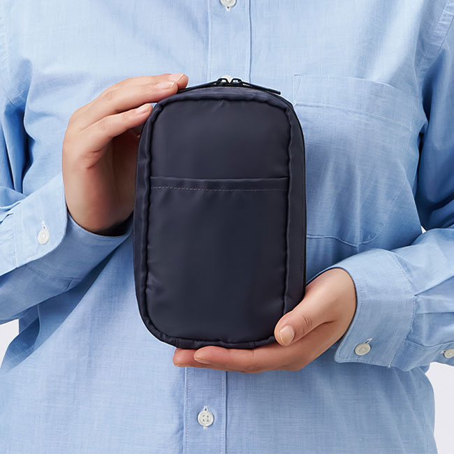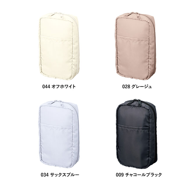 ペンやメイクブラシなど細長い小物もスッキリしまえるロング型の「マルチポケットポリポーチ ロング」。内側には収納に便利なポケットが6つも付いているので、中身を整頓できて取り出したいものをサッと取り出せます。しなやかなポリエステル生地で作られたポーチは高級感があり、コスメショップのノベルティや百貨店の記念品などにお薦めです。ショップロゴやブランド名などを激安印刷いたしますので、当店でのオリジナル製作をぜひご検討下さいませ。