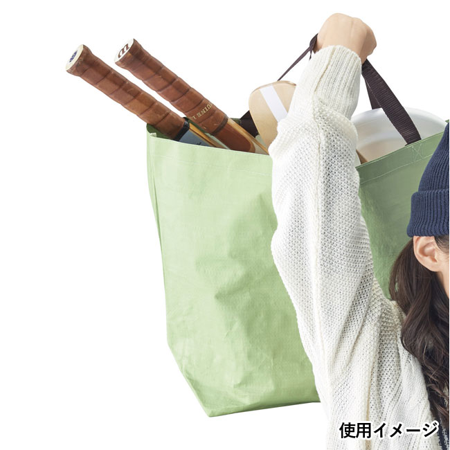 「2WAYアクティブバッグ」は、ハンドルとショルダーの二種類の持ち手付きが便利なトートバッグ。大容量サイズなのでショッピングやアウトドアにも便利で、荷物の量やシーンに応じて、手持ちと肩掛けの2WAYでご活用頂けます。また、水濡れに強い素材を使っているのでランドリーバッグにも最適です。ワンポイントでオリジナル名入れ印刷が可能ですので、ショップロゴや企業名入りのキャンペーンバッグや特注ノベルティにいかがでしょうか。