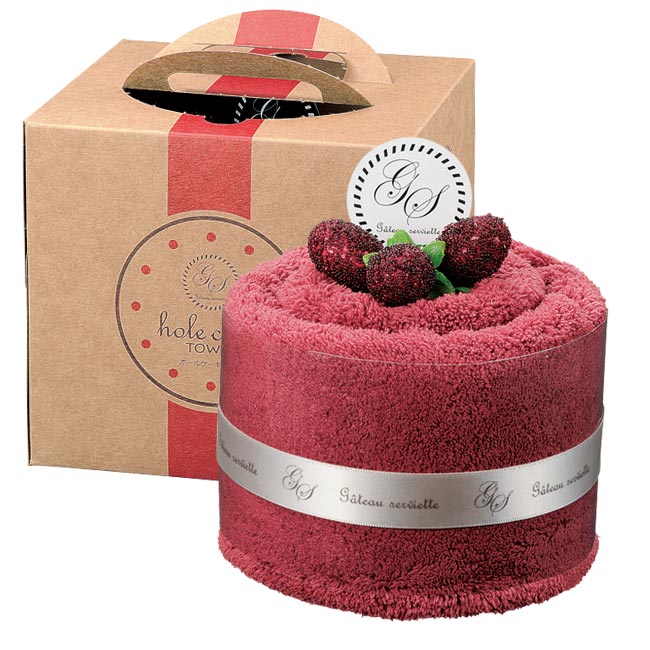 40×80cmの大きめのタオルはケーキボックス風の化粧箱にホールケーキの様な形でパッケージされており、イベントやパーティーでの集客、販促ギフトに最適です。飲食店や雑貨店でフェア景品にも。