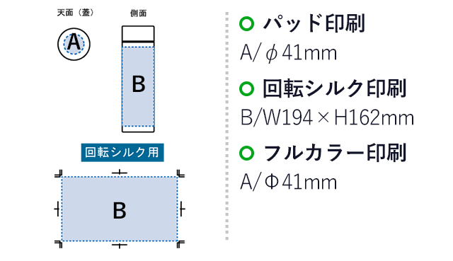 回転シルク印刷により、広範囲の総柄プリントも綺麗な仕上がりになります。落ち着きのある木目調の本体にオリジナルプリントを重ねることで、お洒落で持ち歩きたくなるノベルティに。ライブやイベントのグッズ制作にもお薦めのサーモボトルです。