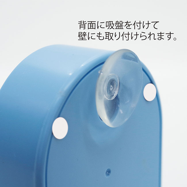 お風呂でも時間確認できるよう防水仕様を施した防水バスクロックはホワイト・ブルー・グリーンの三色をご用意。背面に吸盤が付属しておりますので、お好みの場所にくっつけて使用できます。格安価格で社名やロゴを入れて製作できますので、オリジナルロゴを入れて小物や雑貨を取り扱っている店舗の物販ノベルティにご利用する事で、競合他社との差別化可能なアイテムです。