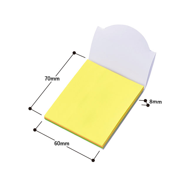 「カスタムデザイン付箋スタンド」は無地の状態から世界に一つだけのオリジナル付箋が製作可能となり、表紙を山折するとポップアップが出来るので名入れ部分がより目立ち宣伝効果も高くなります。 中の付箋は蛍光色のイエロー・オレンジ・グリーンの3色を採用しており鮮やかなネオンカラーがデスク周りやノート上でも目を引きますので忘れ防止にも!