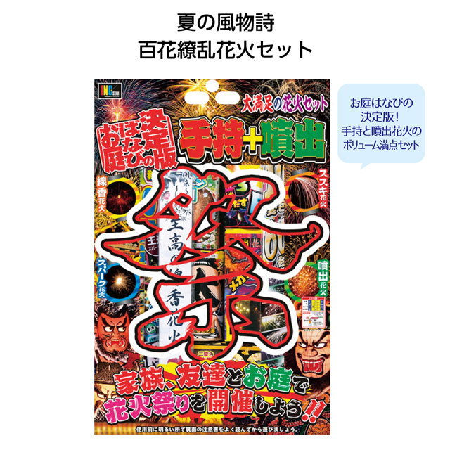 「お庭で花火祭 530g」は、手持ち花火と噴出花火がどちらも入っているお庭花火の決定版です。手持ち花火は煌びやかなススキ花火、スパーク花火の他、昔懐かしい線香花火も入っていて、お子さまもお年寄りも家族みんなで楽しめます。充実したセット内容の花火キットを当店は通販専門店だからこそ可能な格安価格で取り扱っておりますので、夏の抽選会の景品やファミリー向けイベントの参加記念品などにいかがでしょうか。