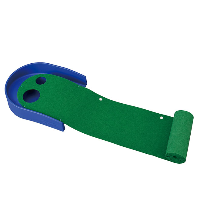 どこでも気軽に楽しめるパターゴルフのおもちゃセットになります。ボール、ホール、クラブ、旗、マットなどが揃っているので、簡単にゲームを始めることができます。ノベルティや景品などにも使用できるうまい棒200個も入っており、成功なら2個、失敗なら参加賞で1個として100人が楽しめるようになっています。