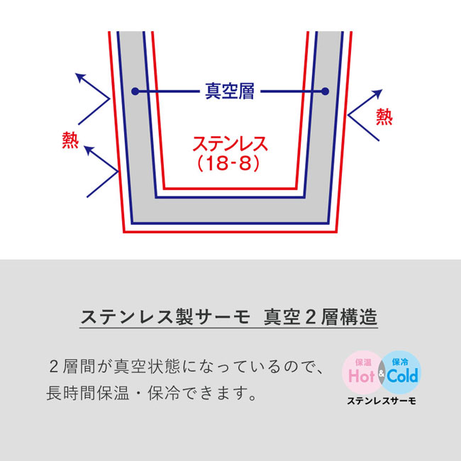 飲み口にはカバーが付いているため、直接口をつけても優しい口当たりです。口径が広く氷をそのまま入れられるので、暑い季節は冷たい飲み物の持ち運びに重宝します。どなたでも使いやすいよう細部にこだわっていて、世代を問わず喜ばれるノベルティです。