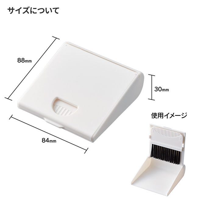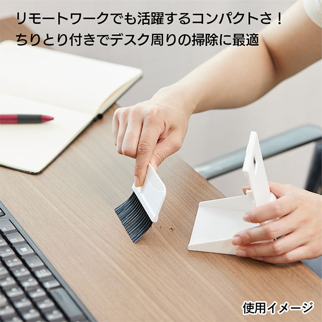 「コンパクトブラシ&ダストパン」は、リモートワークで活躍するコンパクトなお掃除アイテム。ちりとり付きでデスク上の消しカスやゴミをサッとまとめて簡単に綺麗にすることができます。ブラシはちりとりにセットできるので持ち運びも楽々。フルカラー印刷にも対応しておりますので、多色の企業ロゴやイラスト入りのノベルティ作成も可能です。展示会や説明会の参加記念品やステーショナリーの購入特典にいかがでしょうか。