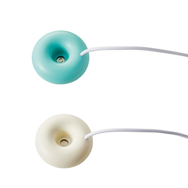 かわいいドーナツ型の「ドーナツ型卓上加湿器」。水に浮かべて簡単に使える加湿器で、とてもコンパクトなのでお手持ちのコップに入れて気軽に加湿することができます。高い機能性ながらキュートな見た目で、女性向けのノベルティとしても人気のアイテムです。