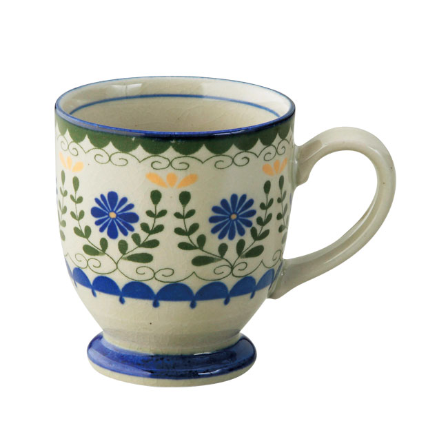 「カルム・マグカップ1P」は、大人なデザインで使いやすさ満点のナチュラル系テーブルウェア。鮮やかなブルーのお花と蔦模様がかわいいアイテムです。大人の女性向けギフトには特にお薦めですので、百貨店などの顧客向け記念品や主婦向けイベントの参加ノベルティのご注文にいかがでしょうか。通販だからこそ可能な激安の値段で販売しておりますので、ぜひ当店をご活用ください。