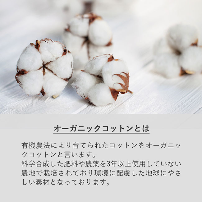 優しいカラーの本体にはフェアトレードコットンの認証を受けた染料が使用されています。染料はフェアトレードコットンのようなオーガニック繊維のための製造・加工基準に基づいており、染色工程で使われる原料も地球環境に配慮しています。