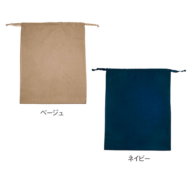 なめらかなスウェード調生地と内側のサテンが高級感漂う、スウェードスタイル巾着(LL)です。洋服もすっぽりと入る大判サイズなので、お渡し用の袋としても活躍します。企業ロゴを名入れプリントして、特注の巾着にすれば特別感あふれるノベルティとしても使用できます。色はベージュとネイビーの2色展開で、どちらも落ち着いた色味のためどんな商品を入れても相性が良いでしょう。通販ショップ様の購入特典としてもご活用いただけます。当ショップでは格安で対応いたしますのでぜひご活用ください。