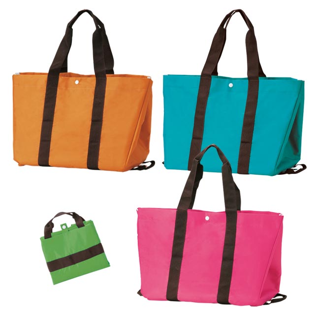 ゴム付きでレジかごにしっかりフィットするお買い物バッグ。カゴにセットしてそのまま取り出せるアイデア商品。アルミ蒸着フィルムで保冷温に優れるのでレジャーでも活躍するノベルティに。