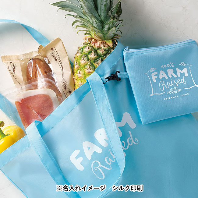折り畳めば付属のポーチにスッキリと収納出来る「コンパクトバッグ(M)ポーチ付」。ポーチに収納して持ち歩けば、旅行先やお買い物バッグなど荷物が増えたときに大助かりします。ポリエステル生地ですので軽量ですし、格安な値段でご用意出来ます。ポーチにも本体にもオリジナルデザインをフルカラー印刷出来ますので、ショップでのキャンペーンやイベントでのノベルティとして制作するのにお薦めです。日常的にお使いいただけるアイテムですので、2次的な販促効果も期待出来ます。