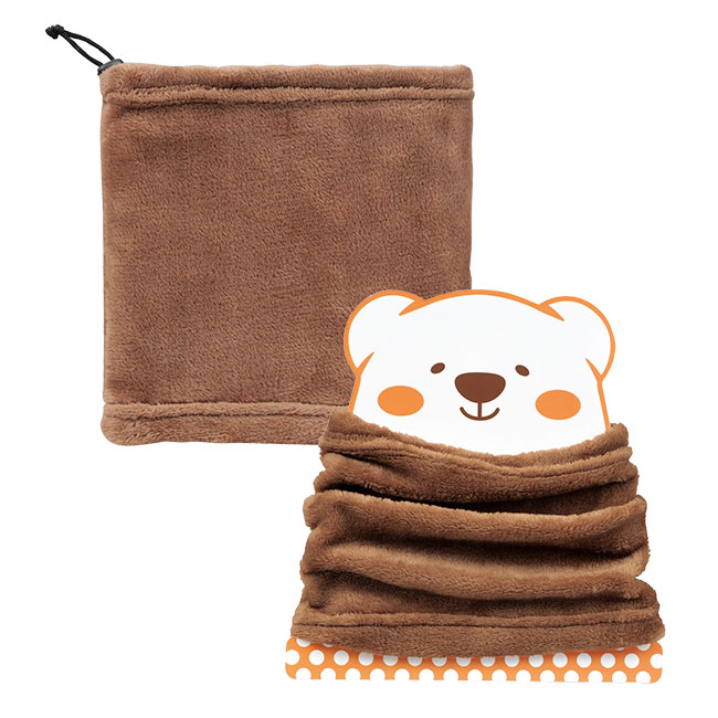 アイキャッチ効果の高いしろくま台紙付きのネックウォーマーです。ディスプレイとしても効果的なアイテムなので、ノベルティのほかイベントや店舗の物販アイテムとしてもおすすめとなっています。フランネル素材で触り心地も滑らかな仕上がりになっています。