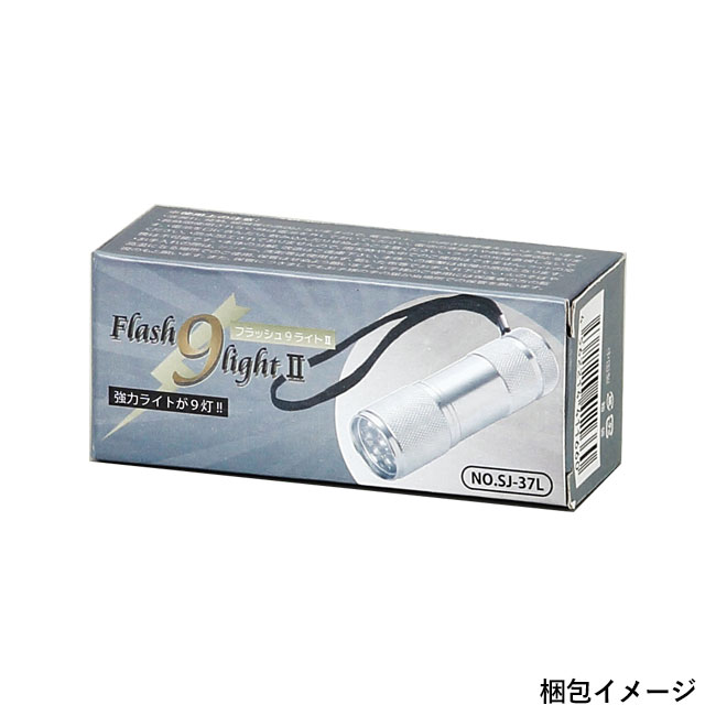 LED9灯ライト(ストラップ付)は、緊急時やアウトドア、様々な場面で便利なライト。コンパクトながら、LED9灯で広範囲をしっかり照らします。本体にはストラップがついており、手にかけたりして使えます。手に収まるコンパクトサイズなので、防災バックの中にも収納しやすいです。本体には名入れプリントも可能。展示会の特注ノベルティや、アウトドアイベントのオリジナル記念品としてお配りすると喜ばれるでしょう。