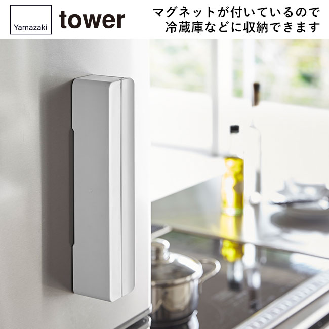 生活感が出やすいラップをおしゃれに収納できるケースが、「マグネットラップケース タワー S/山崎実業」です。マグネットでケースをピタッと冷蔵庫に張り付けられるので、収納場所にも困りません。S・Lの2サイズ展開のうち、Sサイズは紙管含む幅23cmまでのラップに対応します。キッチン家電の購入特典やポイントカードの景品ノベルティ等にお薦めです。当通販店では格安価格にて名入れ製作も承っております。