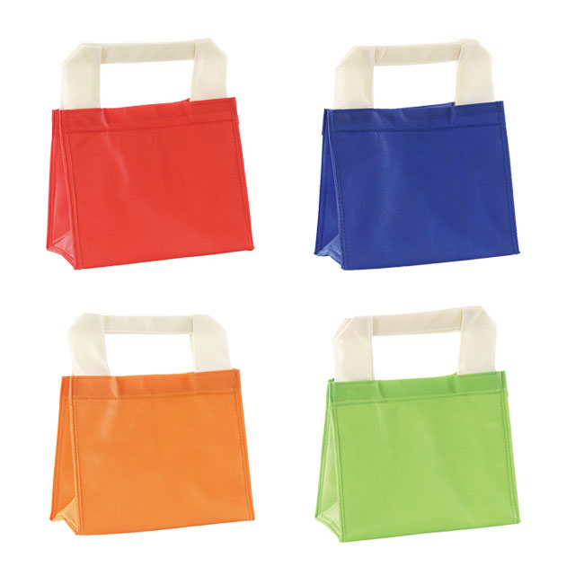 中面のアルミ蒸着フィルムと面ファスナーで保冷・保温性に優れるランチバッグ。13色から選べるカラーと大きい名入れスペースでオリジナルかつ実用度の高いノベルティグッズができます。