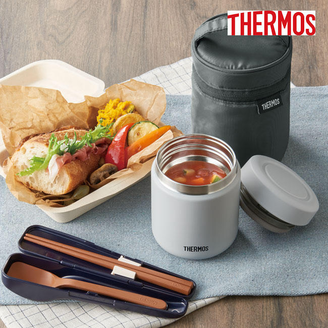 「サーモス(THERMOS)真空断熱スープジャー 300ml/JBR」は、コンパクトサイズがスープやサラダを持ち運ぶのにちょうど良い真空断熱構造のスープジャーになります。フタを少し回すだけで簡単に開くクリック構造は、お子様や女性も使いやすい仕様です。シリーズ最小の容量300mlサイズは、学校やオフィスでのランチタイムに重宝します。ショップロゴやイラストのプリント製作が格安価格で可能ですので、物販やノベルティのオーダーメイドにお薦めです。
