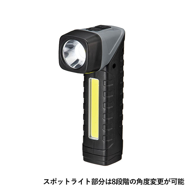 ヘッドの角度を8段階まで変えられるCOB多機能ライトの「COB多機能ムーブヘッドライト」です。ボディについているクリップを使えばバッグに、底面についているマグネットを使えばロッカーや手すりにくっついてどんな環境でも使えるのがポイント。広範囲まで明るく照らすCOBライトは、停電時やアウトドアなどマルチに活躍します。贈答品にも喜ばれるアイテムですので、家電量販店の開店記念品や防災教室の参加者向け贈答品などにぜひ。社名やロゴの名入れを格安製作致します。