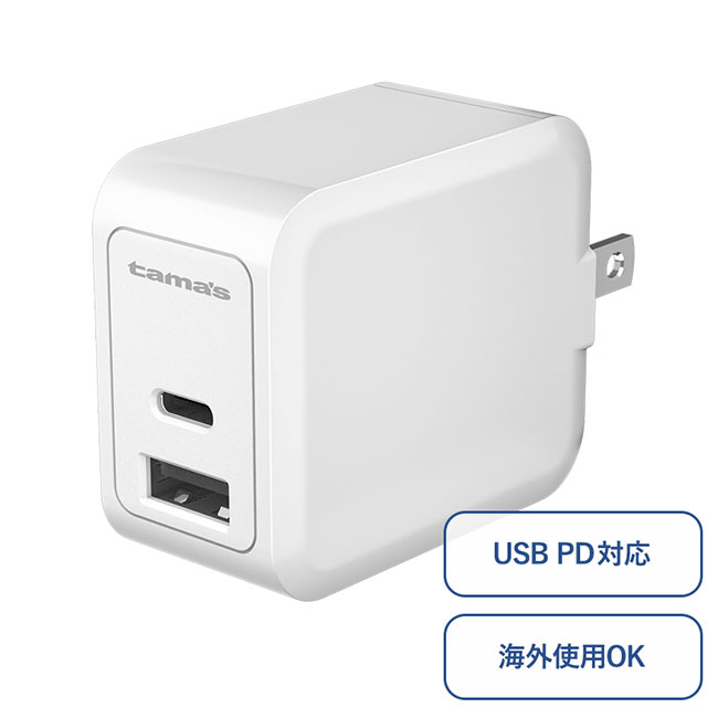 単体で使用したときに最大で30Wの給電能力を発揮するUSB PD対応のコンセントチャージャーです。PDとは、USB Type-Cコネクタに対応した急速充電可能なチャージャーのこと。USB Type-Cの他にも、最大12WのUSB-Aポートも搭載されています。海外でも使用でき、ACプラグは回転式なので持ち運びもスムーズです。