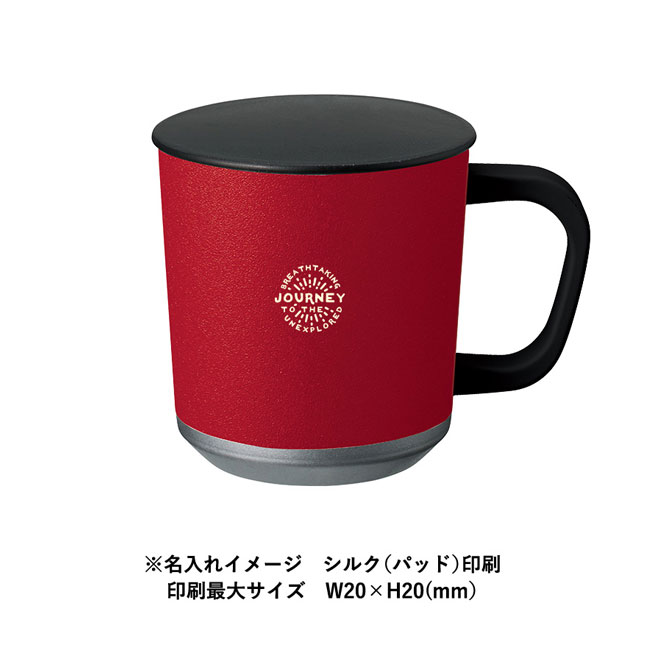 「Zalattoフタ付サーモマグ380ml」は、蓋付きでホコリが入らないのが安心のハンドル付きマグカップ。真空2層で保温・保冷を長時間キープし、実用性抜群の商品です。ざらっとした質感がマニッシュでおしゃれな印象ですので、アウトドアショップやアパレルブランドの記念品・ノベルティ製作にもお薦め。男女問わず使えるオリジナルグッズとして、店舗ロゴなどの格安プリントを承ります。