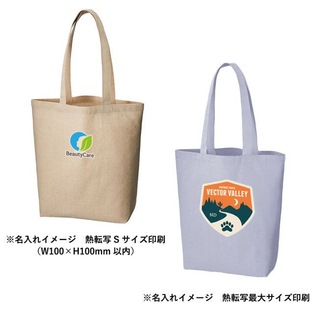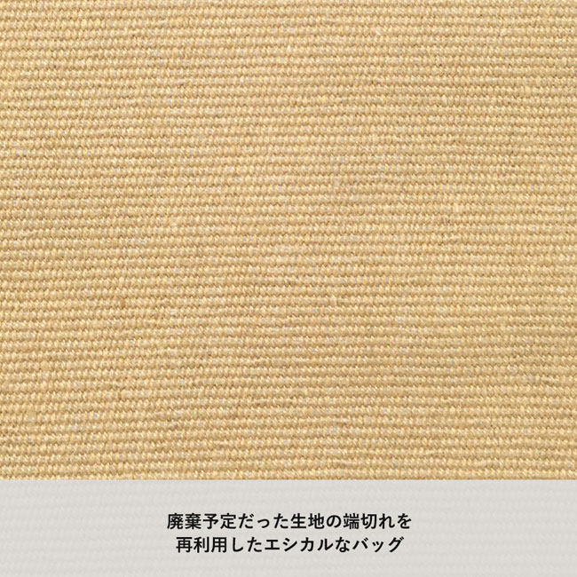 「シャンブリックマチ付トート(M)」は廃棄予定だった生地の切れ端を再利用し、縦・横糸を違う色で織り込んだ優しいニュアンスカラーが魅力の再生ファブリック素材を使用しています。形状はスタンダードな舟底型の底マチで厚みのある荷物もスッキリ収納可能です。販促用にお洒落なノベルティを作成したい方にイチオシです。