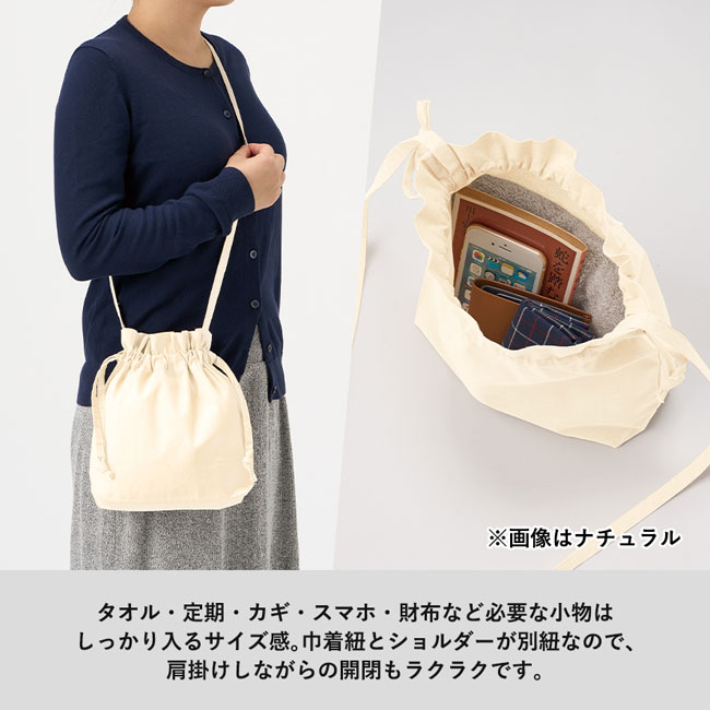 オーガニック厚手コットン 巾着ショルダーバッグ