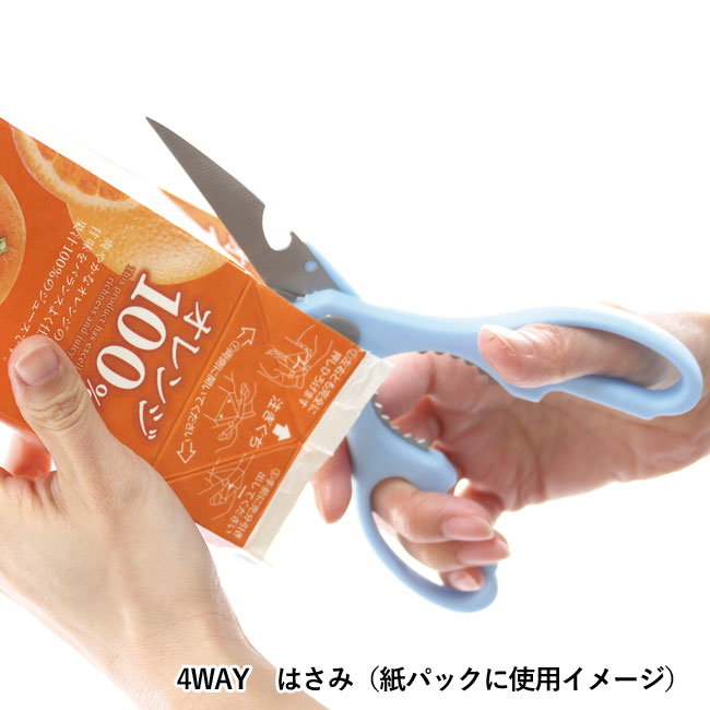 「マグネットケース付はさみ」は、くるみ割、オープナー、栓抜き、はさみの4つの機能を備えた万能なはさみ。マグネット付きのケースに収納して冷蔵庫や玄関に貼りつけておけば、使いたいときにすぐに使えて日常生活に重宝します。ケースには激安価格のプリント制作ができますので、企業名を名入れすれば訴求力の高いノベルティになります。料理教室の参加記念品や、日用品店の購入特典などに当商品の名入れ作成をご検討下さいませ。