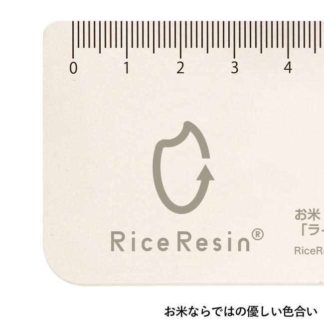 ペンケースにも入れやすく持っていると重宝し、学生やオフィスワーカーに喜ばれる15㎝の定規。循環するお米のマークと「Rise Resin」の文字の横にはお米性バイオマスプラスチックの説明分が書かれており、贈る相手へエコの意識を啓発させます。